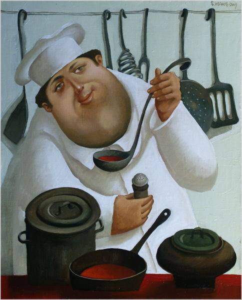 “I was born on August 14, 1957 in Dnipropetrovsk, Ukraine, into a family of military musicians. I arrived in Moscow in 1973. I worked in construction, then in a factory as an artist-designer, in 1989 I graduated from the Moscow art school. In 1992 I started working with outdoor genre compositions with Moscow cityscapes and, of course, with portraits. I started exhibiting when I was a student, my first foreign exhibition was in Australia. For the first time I called my collection "Planet of Fats" in 2000 (it was suggested by Moscow journalist L. Urazova). Today I continue working on this series, the themes of life are inexhaustible. The characters, of course, change externally and internally, it seems to me. I take many topics from life: my time in the navy, studying at music school and everything is enough. I work hard with great pleasure, enjoying the process. During this time I have made more than 3000 paintings. Since 2006 I started making dolls, if you can call them dolls. So that the paintings don't get boring, I put them aside and shape the figures, sculptures and other paintings with a slight grotesqueness, without any anger. I hope that all my works have a good irony and that the fats are just big and kind. My works, naturally, have been shared all over the world. When you work with galleries, you don't know where your work has gone. My works are in the family collections of many Russian politicians and artists such as M. Gorbachev, V. Zhirinovsky, Yu. Luzhkov, I. Kobzon, N. Mikhalkov, O. Tabakov, M. Zakharov, I. Oleynikov, Yu. Stoyanov, A. Kucherena, M. Lesin, E. Malysheva and others. Since 2013 I have been collaborating with I. Myzina's doll gallery "Vakhtanov" in the Central House of Artists and with the gallery “Doll Space”. In addition, I have participated in many projects and exhibitions. Since 2013 I have participated in the international Tishinka doll exhibitions from the "Dolls space" gallery. Together with them I am also exhibited in the Moscow Puppet Theater on Spartakovskaya Street.