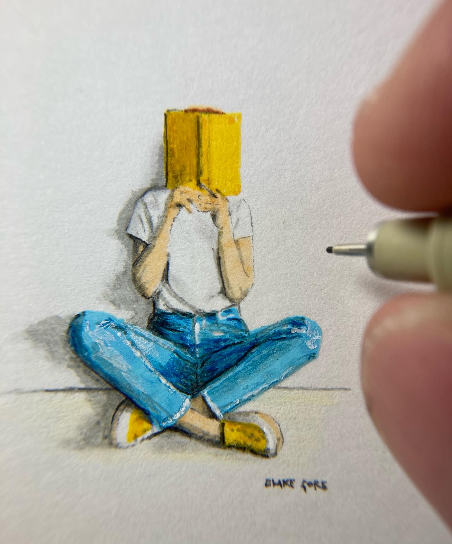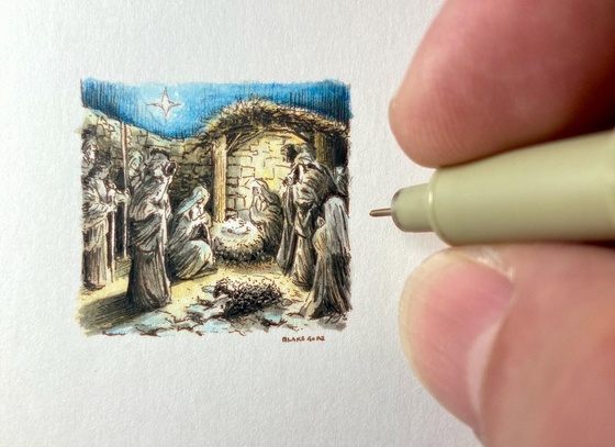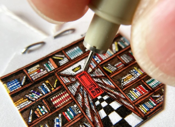 Combining endless curiosity with an eye for detail, I create miniature art using a .15mm pen nib and minimalist canvases. Often drawing inside only an inch or two, I’m inspired by the challenge of creating more with less. Hand-drawn with no magnification or eyeglasses, my miniatures demonstrate how constraints can enhance creativity. Lacking formal art training, my journey as an artist has been as unexpected as could be. At 37 years old, I discovered drawing as a creative outlet during my career as an instructor and adviser at Vanderbilt University. Following my own advice to students to be lifelong learners, I began honing my craft at the breakfast table after being intrigued by a miniature drawing prompt on social media.
