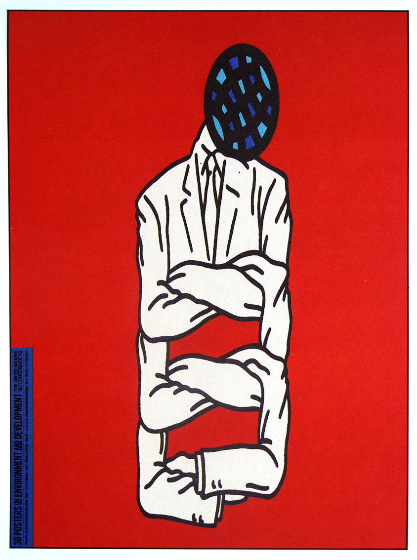 Fukuda Shigeo (Birth: February 4, 1932 – Death: January 11, 2009). He was a sculptor, graphic artist and poster designer who created optical illusions. His artworks often depict deception, such as Lunch With a Helmet On, a sculpture created entirely from forks, knives and spoons, which casts the detailed shadow of a motorcycle. Fukuda was born on February 4, 1932 in Tokyo into a family that was dedicated to making toys. After the end of World War II, he became interested in the minimalist style of Swiss graphic design and graduated from the Tokyo National University of Fine Arts and Music in 1956. The New York Times described how Fukuda's posters "distilled complex concepts into compelling images of logo simplicity." His commercial work included the creation of the official poster for the 1970 World's Fair in Osaka. A 1980 poster created for Amnesty International features a clenched fist woven together with barbed wire, with the letter "S" of the word "Amnesty" at the top of the poster formed by an attached shackle. "Victoria 1945", one of his best-known works, features a projectile aimed directly at the opening of a cannon barrel. A pair of posters created to celebrate Earth Day include a design showing the Earth as a seed opening against a solid navy blue background and "1982 Happy Earth Day," which shows an ax with its head against the ground and a small branch sprouting upward from its handle. In 1987, Fukuda was inducted into the Art Directors Club Hall of Fame in New York City, which described him as "Japan's consummate visual communicator", making him the first Japanese designer chosen for this recognition. The Art Directors Club noted the "scathingly satirical commentary on the folly of war" shown in "Victory 1945", which earned it the grand prize at the 1975 Warsaw Poster Competition, a competition whose proceeds went to the Fund Movement. for Peace. His house on the outskirts of Tokyo had a 1.2 m (4 ft) high front door that seemed very far away to someone approaching the house. This door was a visual trick, with the actual entrance to the house being an unadorned white door designed to blend seamlessly with the walls of the house. Fukuda died on January 11, 2009, after suffering a subarachnoid hemorrhage.