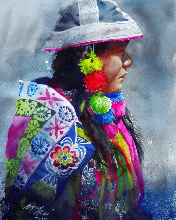 Rogger Oncoy is a Peruvian artist known for his masterful watercolor paintings that capture the spirit, colors, and traditions of the Andean people. Born in Ayacucho, he grew up surrounded by mountains, festivals, and folklore that deeply influenced his artistic vision. His works often portray indigenous life, rural landscapes, and cultural rituals with great sensitivity and respect. Oncoy’s brushwork is delicate yet expressive, creating a luminous atmosphere that brings his subjects to life. He uses vibrant colors that reflect the richness of Peruvian heritage and the harmony between humans and nature. Throughout his career, he has participated in numerous exhibitions across Latin America and Europe, earning recognition for his contribution to contemporary watercolor art. His paintings often evoke nostalgia and pride for Andean identity, bridging traditional roots with modern techniques. Rogger Oncoy continues to inspire young artists through his teaching and community involvement. His art serves as both a tribute to his homeland and a universal message of beauty, resilience, and cultural unity.