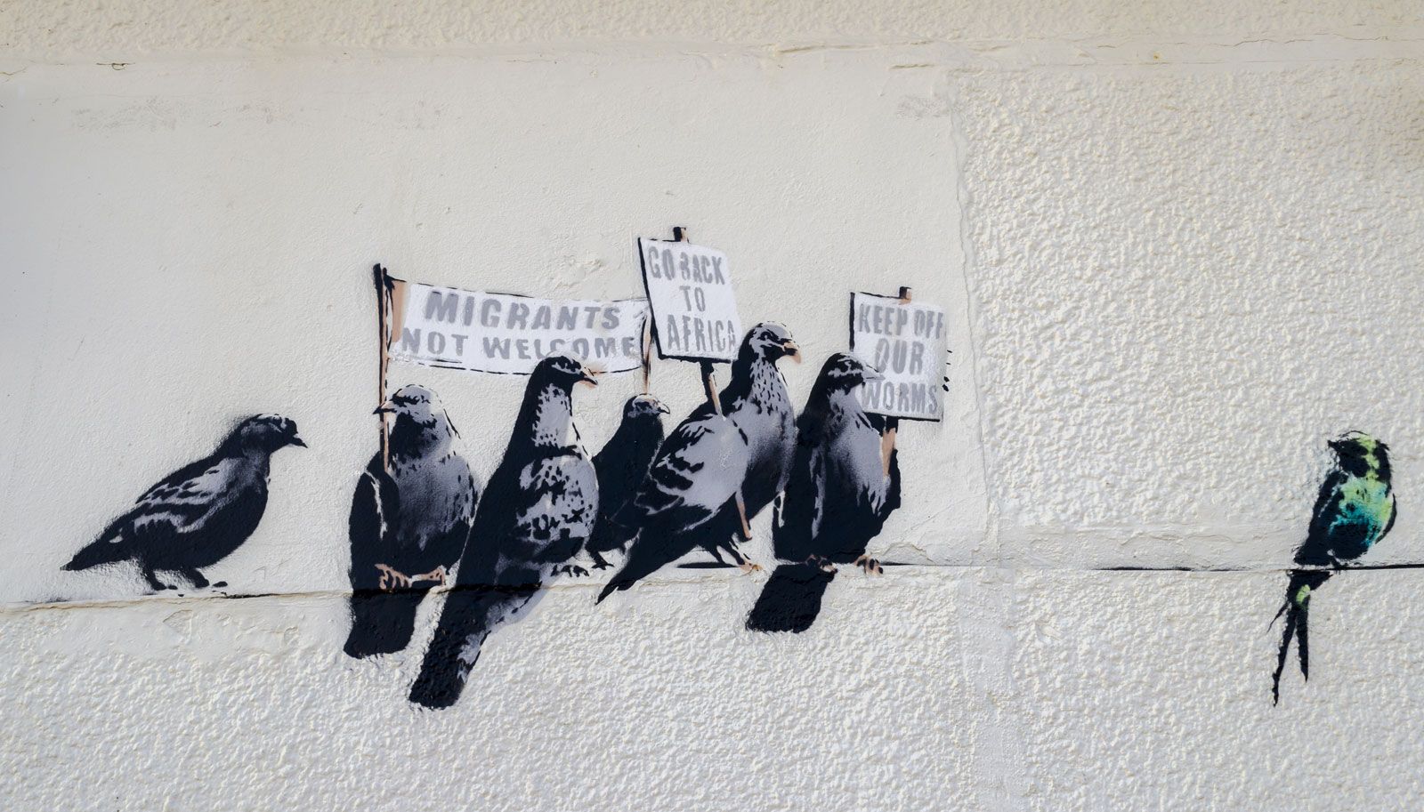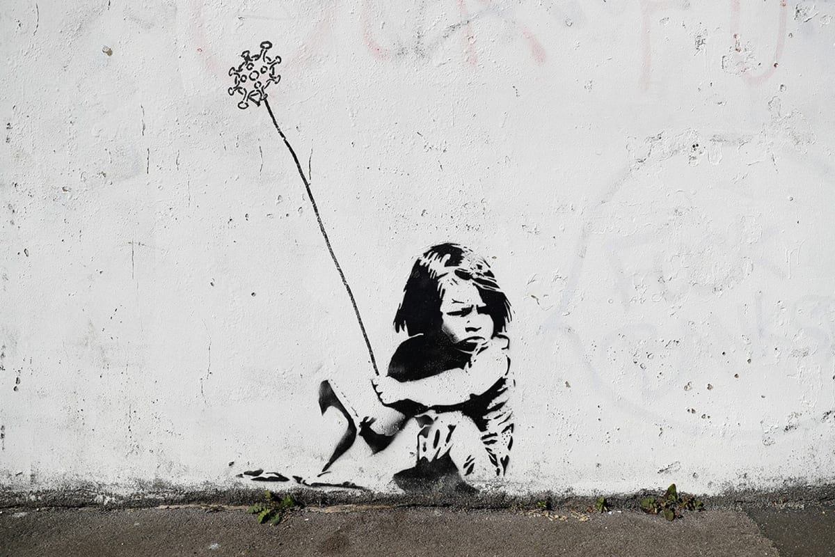 Banksy is an anonymous graffiti artist who may have been born in Bristol, England. He is known for his anti-authoritarian art, often done in public places. He came to notice as a freehand graffiti artist. With wry wit and stealth, Banksy merged graffiti art with installation and performance art.