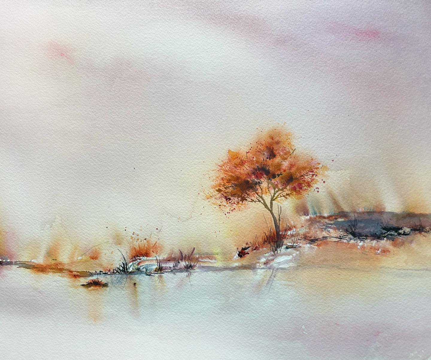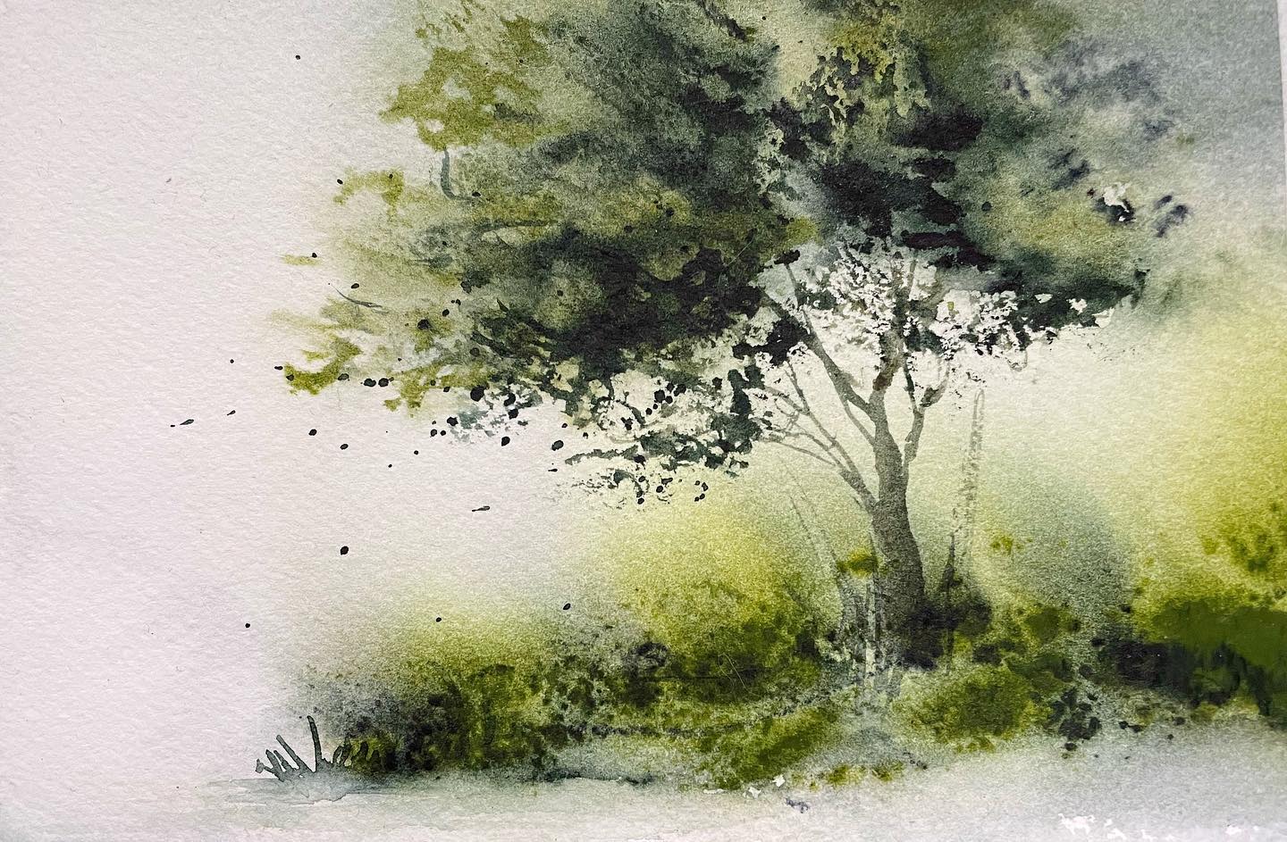 Karlyn Shahnazarian is a Canadian with a multitude of roles: mum to 2 children, educator and artist. She has not always considered herself artistic, but recently has felt a need for a creative outlet, a way to express herself through artistic activities. It was during the Covid lockdown that Karlyn was able to explore new modes of expression and start to grasp the real extent of her abilities. She started by experimenting with sketching before eventually finding watercolours. The complexity of this medium immediately appealed to her. The fragility, the attitude and most of all the fluidity. “Watercolour set me free. Little by little the paints taught me to let go of rules and expectations. They guided me toward the light and helped me to find beauty and purpose in the shadows. Once I began to trust in the process, I was able to create freely and eventually developed my own style. Embracing unconventional techniques, I’ve been able to create watercolour landscapes that exist somewhere between fact and fiction. Atmospheric landscapes that personify and celebrate the trees and bring peace to the viewer. It is a magical journey and I am grateful for it every day.”