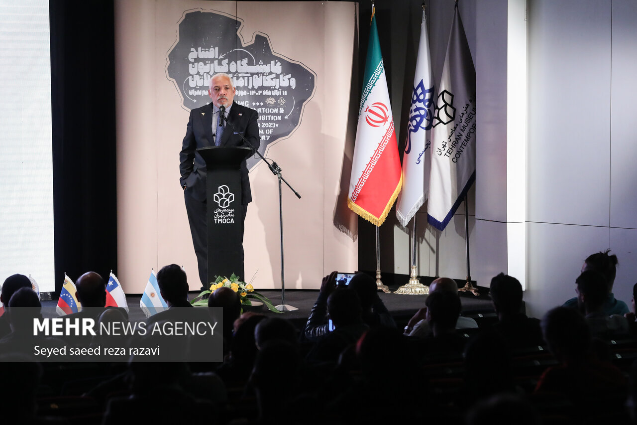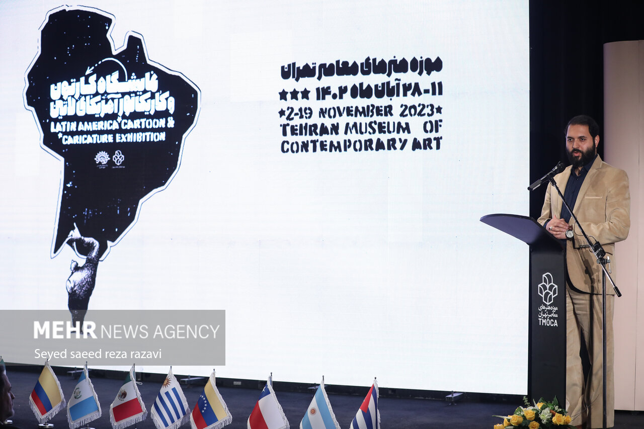 The "Latin America" cartoon and caricature exhibition was opened at the Tehran Museum of Contemporary Art with the presence of art directors, the Cuban ambassador and Latin American artists.