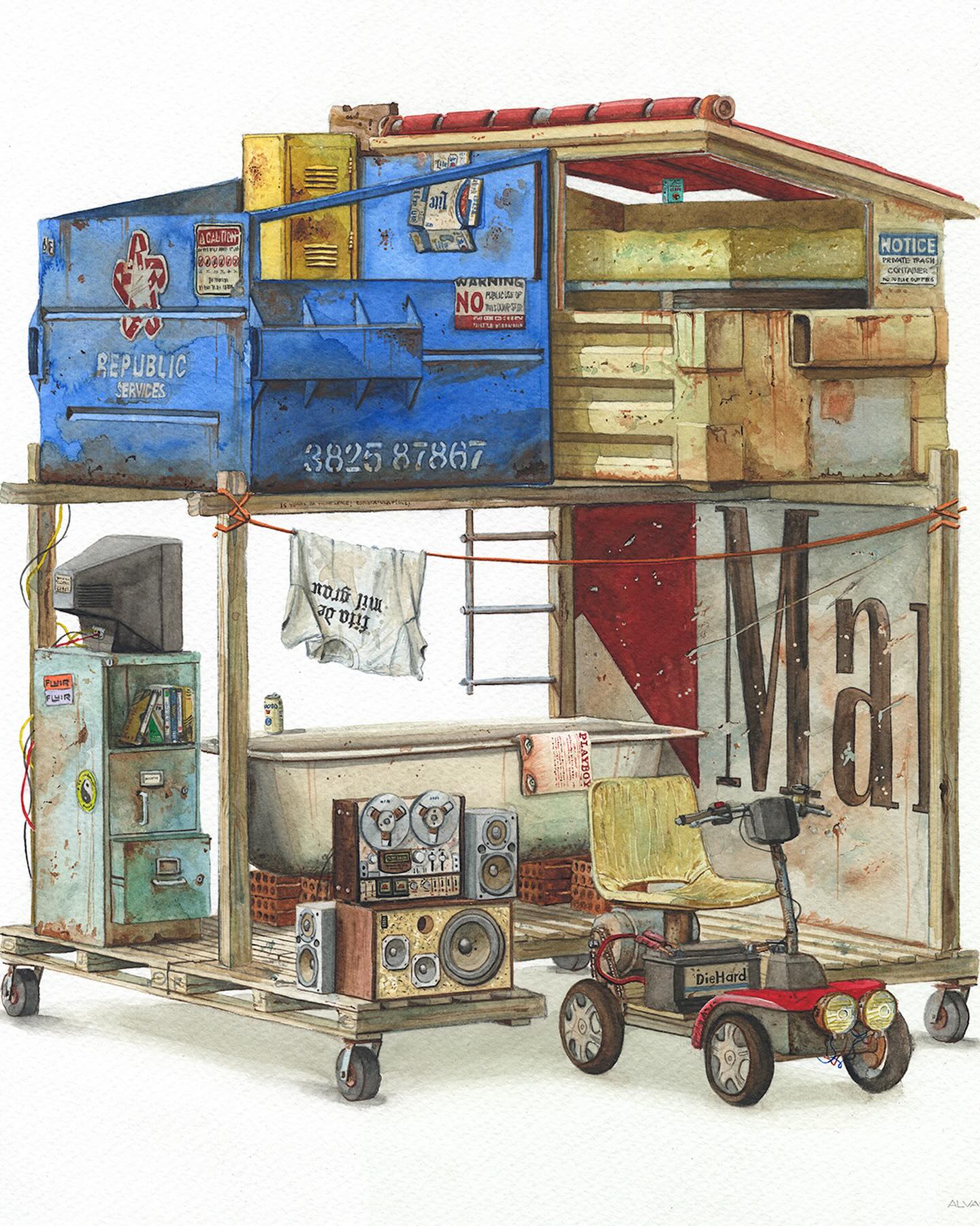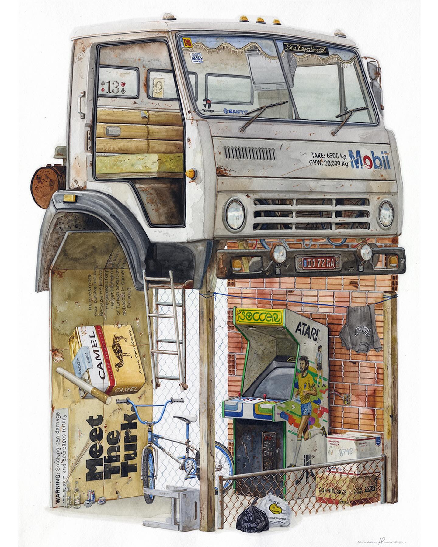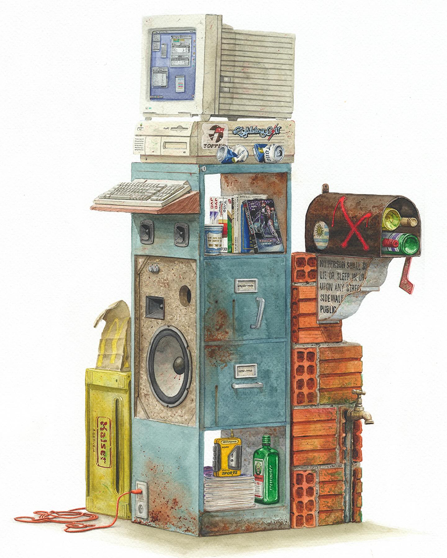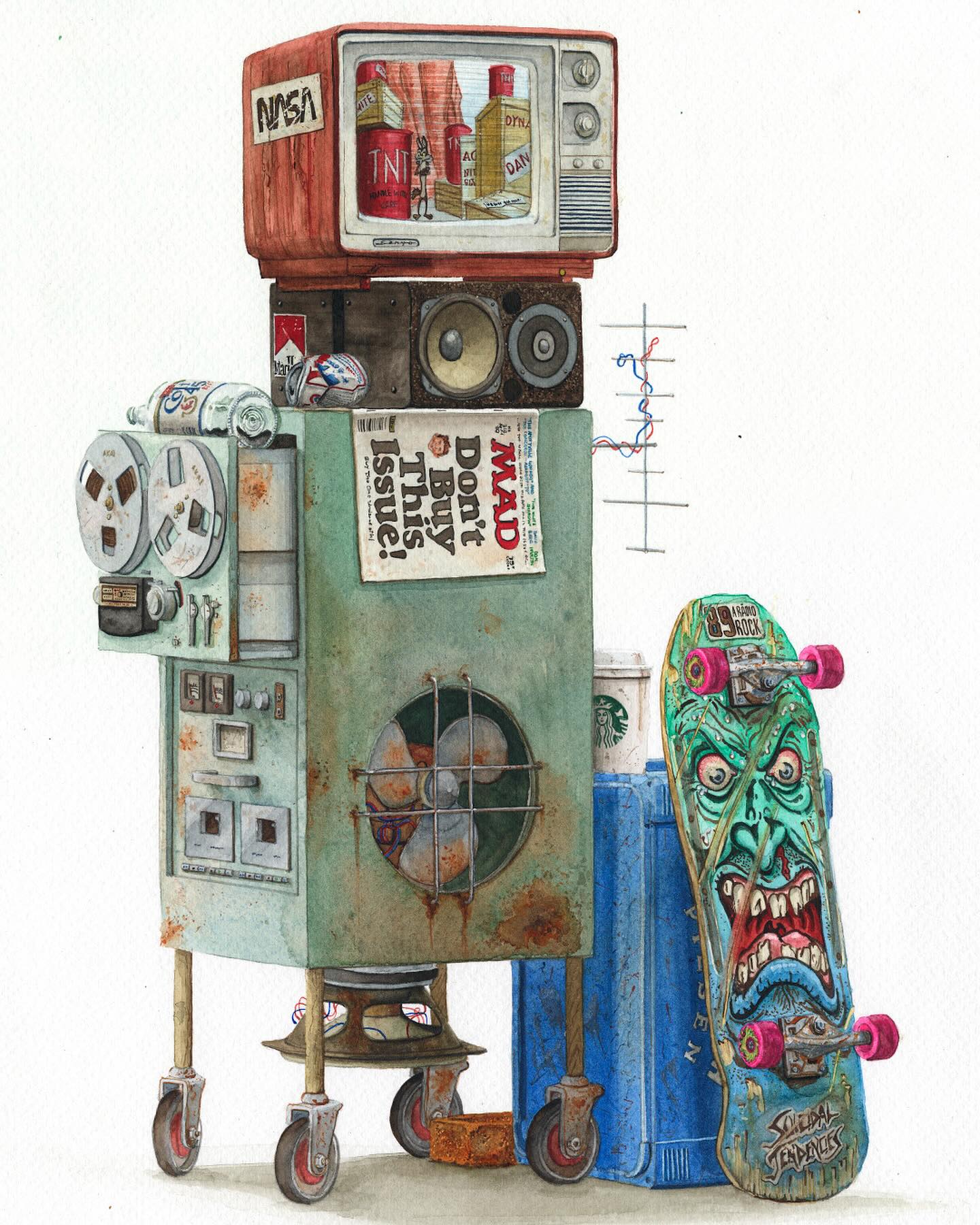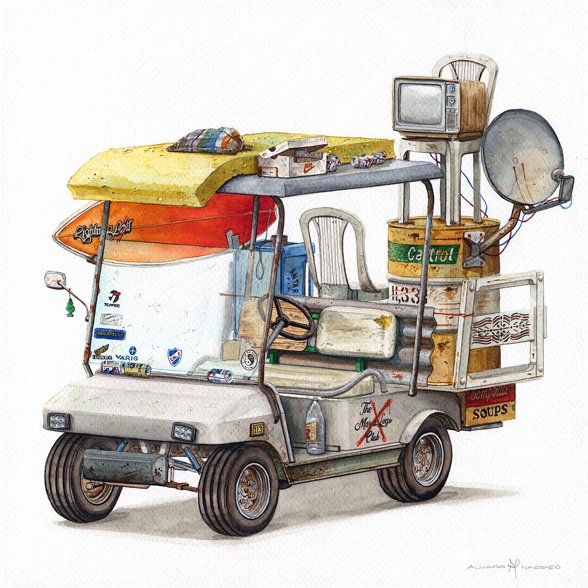Álvaro Naddeo es un artista brasileño originario de São Paulo que ha vivido en varias ciudades como Lima, Nueva York y actualmente reside en Los Ángeles. Su obra mezcla recuerdos de esos entornos urbanos con reflexiones profundas sobre el consumo excesivo, el desperdicio y la desigualdad social. Después de trabajar más de veinte años en publicidad como director de arte, volvió al arte plástico (particularmente acuarela y medios mixtos) para explorar temas personales y sociales. Naddeo suele utilizar objetos desechados, empaques de marcas y residuos urbanos en sus pinturas como símbolos tanto de deseo cultural como de crítica. Su estilo fusiona señales visuales locales con universales—logos, envases, carteles—acompañados de composición cuidadosa y colorido. Ha participado en exposiciones individuales y colectivas a nivel internacional.