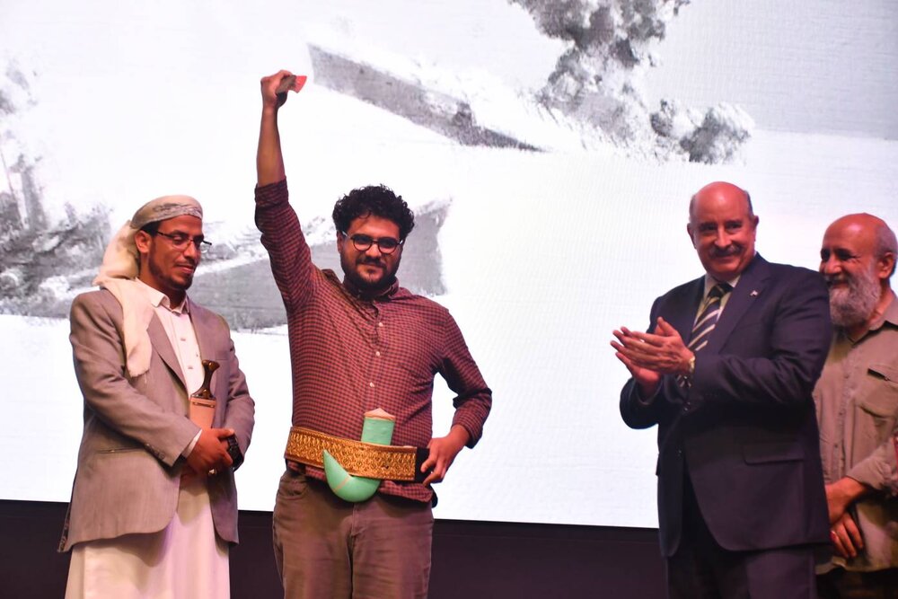 Se leyó un mensaje del artista yemení Kamal Sharaf, quien no pudo asistir al evento debido a los ataques israelíes al aeropuerto de Saná. En el texto, declaró: